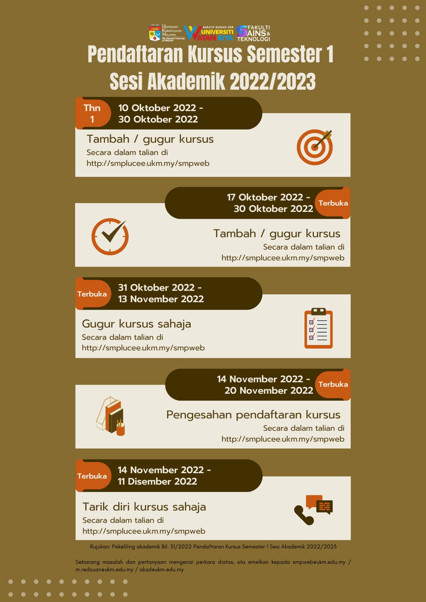 Demokrat Ukm Tarikh Tarikh Penting Berikut Adalah Tarikh Tarikh Penting Berkenaan Dengan Pendaftaran Kursus Bagi Semester 1 Sesi Akademik 21 22 Semoga Bermanfaat Untuk Semua Pautan Link Smp Ukm Https Smplucee Ukm My Smpweb Demokratukm